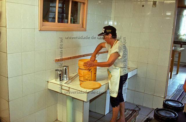 Processo de produção de queijo. Fazenda de propriedade de Enio Batalha.