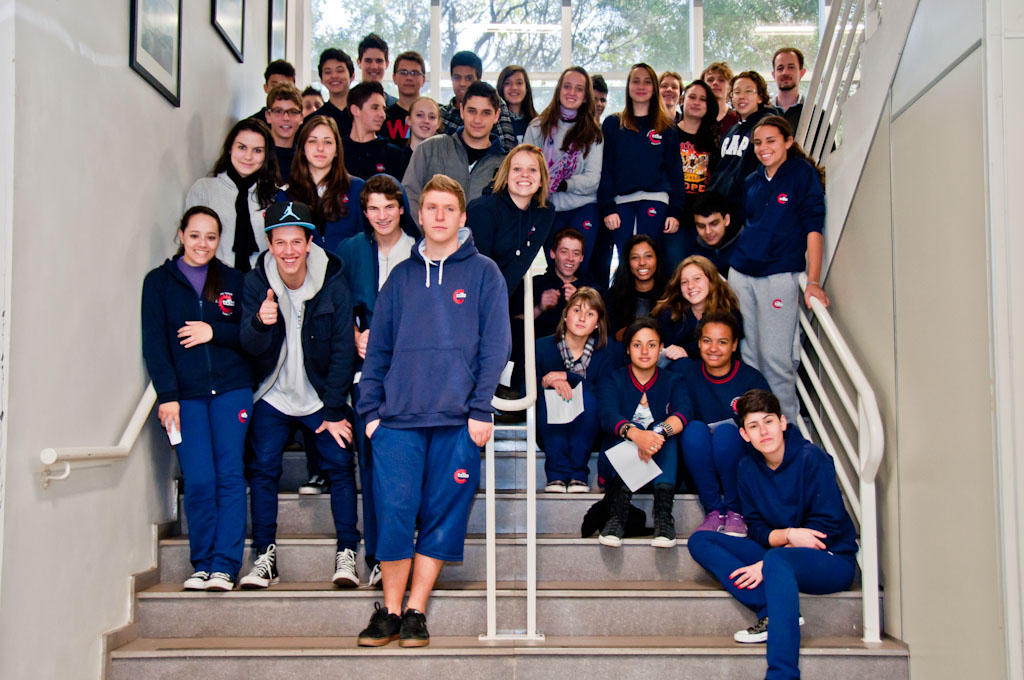 Retrato do grupo de alunos da EETCS (Escola Estadual Técnica de Caxias do Sul) que visitou o IMHC.