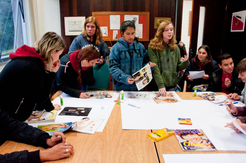 Oficina realizada com alunos dos 1º, 2º e 3º anos da Escola Estadual Professor Apolinário Alves dos Santos, de Caxias do Sul. A oficina consistia em analisar fotografias publicitárias constantes em anúncios de revistas como 'Capricho', 'Atrevida', 'Boa Forma', 'Corpo a Corpo', 'Veja', 'Lola' e 'Cláudia', buscando interpretar representações da mulher (ou do gênero feminino) nessas publicações. Os alunos deviam confeccionar cartazes para sintetizar e apresentar ao grupo suas análises. A oficina foi ministrada pelo funcionário do IMHC Anthony Beux Tessari.