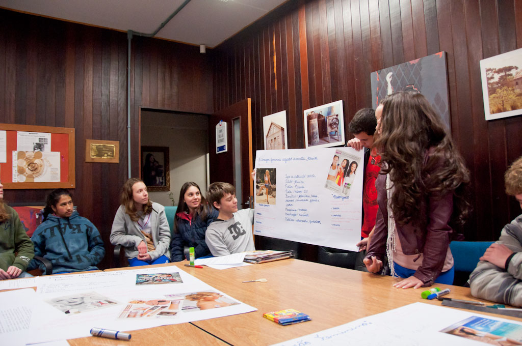 Oficina realizada com alunos dos 1º, 2º e 3º anos da Escola Estadual Professor Apolinário Alves dos Santos, de Caxias do Sul. A oficina consistia em analisar fotografias publicitárias constantes em anúncios de revistas como 'Capricho', 'Atrevida', 'Boa Forma', 'Corpo a Corpo', 'Veja', 'Lola' e 'Cláudia', buscando interpretar representações da mulher (ou do gênero feminino) nessas publicações. Os alunos deviam confeccionar cartazes para sintetizar e apresentar ao grupo suas análises. A oficina foi ministrada pelo funcionário do IMHC Anthony Beux Tessari.